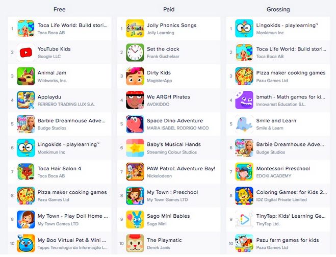2. Aprovecha las licencias de personajes conocidos. Las caricaturas más populares pueden resultar más atractivas, no solo para los pequeños, sino para los padres, quienes pueden confiar más en ellas por la seguridad y la calidad del contenido que pueden ofrecer a sus hijos. Es por ello que las apps de los canales de televisión infantil o aquellas con personajes de películas o juguetes, también están dentro de las mejor evaluadas en el Top Chart de App Annie.
