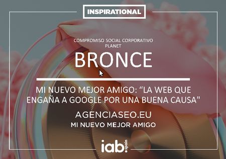 La agencia especializada en SEO y marketing digital, agenciaSEO.eu, ha logrado el Bronce en los Premios Inspirational del IAB, en la categoría Compromiso Social Corporativo Planet, con su proyecto solidario Mi Nuevo Mejor Amigo.