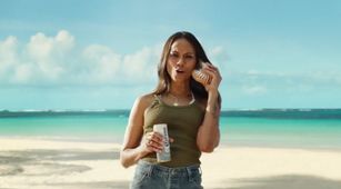 En el spot, Snoop toma el sol tranquilamente en la playa cuando comienza de repente a zumbar su teléfono, en este caso, una caracola. Al otro lado de la línea está Zoe Saldana con un nautilus firmemente pegado a su oreja. “¡Snoop!”, grita la intérprete. “¡Zoe!”, responde el rapero, que pone su singular teléfono en modo altavoz para que Bad Bunny (que está dándose un chapuzón en el agua) se sume a la delirante conversación.