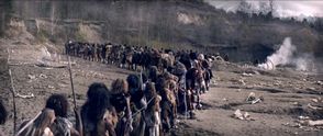 Con gran ingenio, vemos a un sapiens poniendo en marcha todo tipo de argucias para saltarse la cola que debe hacer para probar un suculento trozo de carne: desde poner una serpiente al de delante, hasta quemarle el pelo a las personas de su alrededor o hacerse pasar por una embarazada. Y todo para evitar la espera en la que denominan la “primera cola de la humanidad”.