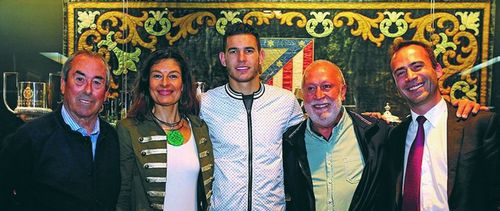 Lucas Hernández, futbolista de la primera plantilla del Atletico de Madrid, y Adelardo Rodríguez, exfutbolista con más partidos en la historia del Club y presidente de la Fundación Atlético de Madrid, han acudido a la presentación institucional de este acuerdo.