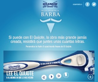 Conmemorando el Día Mundial del Libro, Wilkinson lanza una aplicación de Facebook en su página https://www.facebook.com/wilkinson.espana, que permite leer El Ingenioso hidalgo Don Quijote de la Mancha sobre la superficie de la maquinilla Hydro 5, la única en el mercado que permite su personalización con una cita, un nombre o un código. De hecho, los lectores podrán personalizar el mango de maquinilla con su pasaje favorito del Quijote y recibirla en casa.