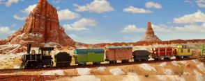 Train, dirigido por el director de publicidad y vídeos musicales Dougal Wilson, nos traslada al atraco de un tren con una puesta en escena al más puro estilo del lejano Oeste que termina en una impresionante explosión y el consiguiente descarrilamiento del tren. Utilizando el humo como recurso de transición, la pieza transita en ese mismo momento hacia una película de animación infantil. Como cabe esperar al saltar de un género a otro, la historia tiene un final feliz: se reconstruye el tren y sigue su marcha a ritmo de una alegre canción.
