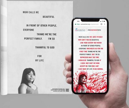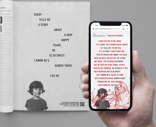 ¿Su objetivo? Crear un entorno 100% seguro para los menores y animar a los adultos a mirar y escuchar con atención lo que estos podrían querer transmitirles. A fin de comunicar apropiadamente esta idea, Sankrakshan y Dentsu convirtieron tradicionales anuncios impresos en experiencias interactivas. Los anuncios, pertrechados de lema “Solo porque no lo veas no significa que no esté sucediendo”, invitan a la gente a escanearlos para revelar a través del teléfono móvil la triste y cruda realidad de la que nadie parece querer hablar.
