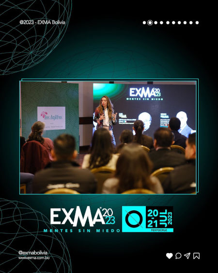 “EXMA Bolivia es un evento para mentes sin miedo, además de ser la plataforma de actualización más importante para altos directivos y líderes corporativos. Somos el centro de networking más importante del país, el 90% de la marcas que son sponsors de EXMA retornan año tras año, marcas valientes que aceleran la dinámica del mercado apostando a seguir construyendo, y esa misma visión es la que hace que lideren y que muevan la economía de nuestro país. Marcas que hacen definitivamente posible que un evento de talla internacional como EXMA se realice en Bolivia”, subrayó Gabriela Thellaeche, CEO de EXMA Bolivia.