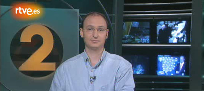 R-. En la producción y realización del informativo intervienen quince personas. Fundamentalmente nos apoyamos en la infraestructura de Televisión Española (corresponsales, imágenes de otros espacios); alguna que otra vez se compran imágenes a periodistas independientes, pero reconozco que están muy mal pagadas. Además, trabajamos con las principales agencias de información como Efe, Reuter, Europa Press, y Ap. También nos servimos de noticias procedentes de gabinetes de prensa, de ONGs…
