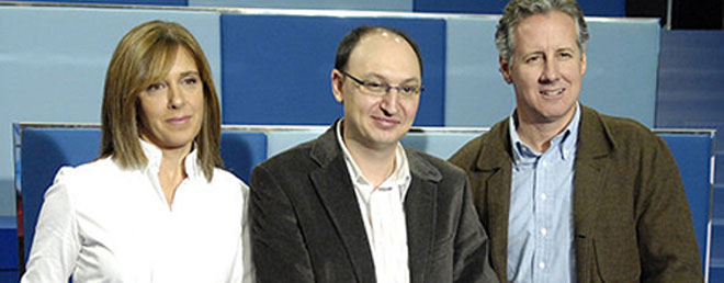 Otro planteamiento nuestro es el ir pegando noticias. No creo que en televisión exista el concepto de “pirámide invertida” (lo más imponte arriba y luego abajo). Otra forma de relatar es narrar las cosas. Una frase nuestra es: “No decimos las noticias, sino que contamos lo que ha pasado”. Detrás de esa frase hay una filosofía que es contar, y contar significa narrar; entonces las noticias se van enlazando unas a otras como harías tú al contarle a un amigo recién llegado qué ha pasado en el último mes en España. El discurso se va enlanzando en virtud de ciertos lazos narrativos, que utilizamos para narrar de otra manera, que pensamos que es el discurso televisivo.