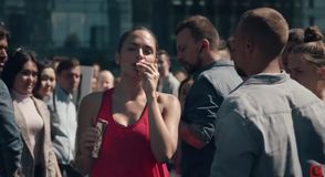 Al principio simplemente corre de forma normal, hasta que comienza a atravesar distintos escenarios. De esta forma, empieza a correr a través de diversos montajes que simbolizan su trabajo ideal, cómo ser una “supermadre”, cómo estar al día con sus amigas, con las series, estar a la moda, etc. La voz en off empieza a acelerar y a subir el volumen, hasta que la protagonista detiene su carrera y grita, mandando callar a la multitud que la rodea. Finalmente, le quita de las manos a un ciudadano una barrita de Galaxy y se aleja de las masas comiendo tranquilamente.