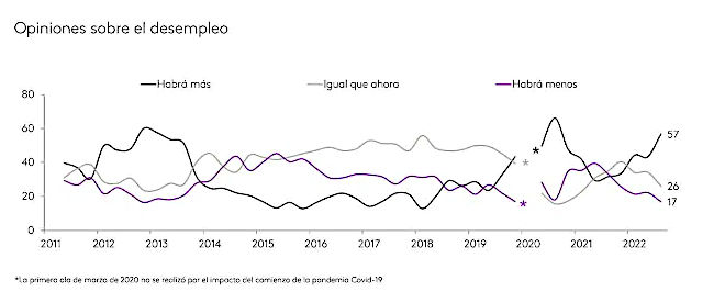 Más de la mitad de los españoles (57%) cree que el paro va a crecer el próximo año. Así lo señala la tercera edición de 2022 del Informe Perspectivas del Consumidor, de Kantar, un estudio que analiza de manera trimestral la confianza del consumidor español en la economía propia y del país.