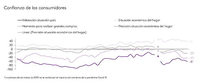 En esta ola vemos cómo los consumidores toman conciencia de que se abre un nuevo periodo de crisis, lo que se traduce en una merma de la confianza, que continúa su descenso hasta los ‑22,4 puntos.