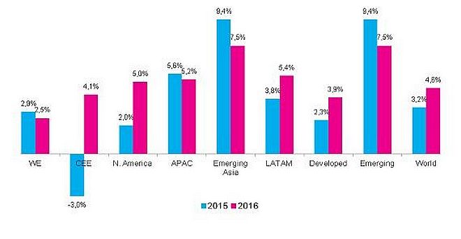 La unidad global de estrategia de medios de IPG Mediabrands, Magna Global, presentó un informe con las cifras de la inversión publicitaria del año que ya termina y las estimaciones para el 2016 en Latinoamérica y el resto del mundo.