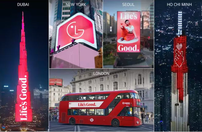 Dentro de la campaña Life is Good, otras icónicas locaciones como Times Square en Nueva York, el rascacielos Landmark 81 en Vietnam o Piccadilly Circus en Londres, además de diversos espacios en Corea del Sur, también expondrán el nuevo logo de LG.