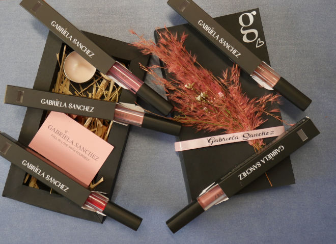 La gama de labiales Gabriela Sánchez se presenta en cinco tonalidades: rojo, rosa, nude, marrón y malva, que se pueden mezclar o usar por separado para crear una infinidad de combinaciones. De textura líquida, ligera y rica en pigmentos, resulta ultra cómoda en los labios, proporcionando un color intenso a los labios desde la primera aplicación. Además, son de larga duración hasta 12 horas, con un acabado mate.