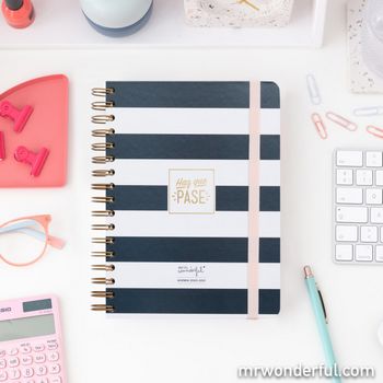 Asi­mis­mo, Rotu is the new black, la línea más rompe­dora de Mr. Won­der­ful, se ha vuel­to todo un clá­si­co de lo más acla­ma­do y por eso el estu­dio repi­te con 2 nue­vas agen­das: una sema­na vis­ta y una a día por pági­na, con un esti­lo muy fres­co y des­en­fa­da­do.