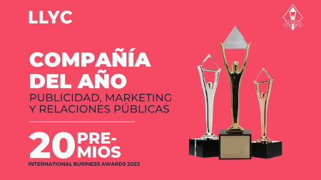LLYC vuel­ve a bri­llar en los Inter­na­tio­nal Busi­ness Awards 2022. La fir­ma ha sido dis­tin­gui­da como “Com­pa­ñía del Año: Publi­ci­dad, Mar­ke­ting y Rela­cio­nes Públi­cas”, y como “Con­sul­to­ra de Comu­ni­ca­ción del Año en Euro­pa”, reco­no­ci­mien­tos en los que ha sido pre­mia­da con oro. Ade­más, ha logra­do pla­ta como “Con­sul­to­ra de Comu­ni­ca­ción del Año en Amé­ri­ca Lati­na”. Estos galar­do­nes reco­no­cen la pre­sen­cia y lide­raz­go de LLYC en las dos regio­nes.