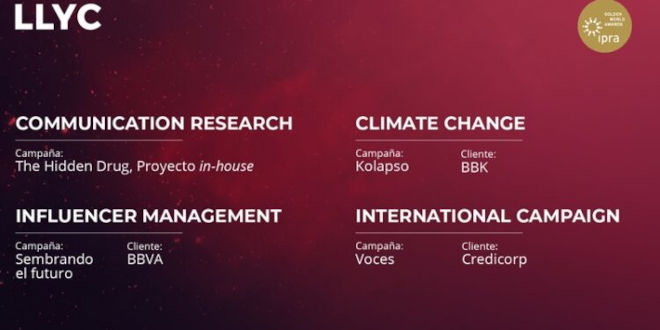 La consultura LLYC ha sido una de las firmas más premiadas en los IPRA Golden World Awards 2023 y la única española en ser reconocida. Ha recibido en total cuatro galardones por sus trabajos en España y Colombia.