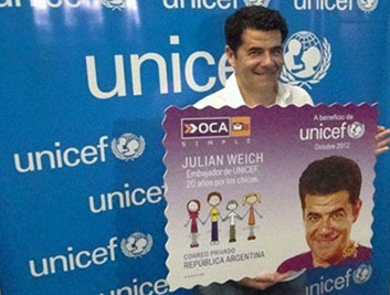 Julián Weich es el motivo de la estampilla 2012, en reconocimiento a sus 20 años como Embajador de Buena Voluntad de UNICEF Argentina.
