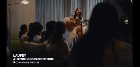 De la mano de Laufey, la cadena muestra un fragmento de un pequeño concierto que la artista brindó a algunos de sus fans en uno de los hoteles Hilton, destacando que las ofertas del programa de fidelidad de la cadena ofrece conciertos como estos a los clientes.