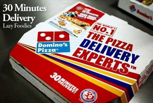 Hot, fresh pizza delivered in 30 minutes or less, guaranteed.