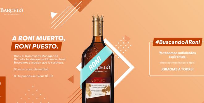 Ron Barceló continúa con los cambios estratégicos para seguir sorprendiendo a sus seguidores más jóvenes con la ya conocida iniciativa #buscandoaroni. Ahora, la marca se une a la reconocida consultora The Valley Talent, experta en el área digital para buscar a “Roni”, el popular community manager de la marca.