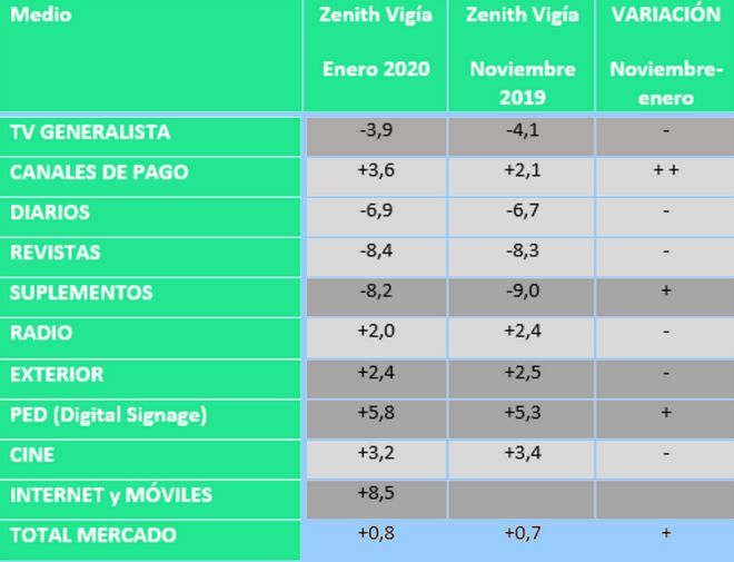 La inversión publicitaria crecerá un 0,8% en 2020, al menos así lo han señalado los panelistas de Zenith Vigía, directivos de medios y grupos de medios de comunicación, tanto tradicionales como nativos digitales. Además, para el año 2020 se prevé un cambio en este sector, pues los anunciantes aumentarán su inversión publicitaria global un 4,3%, según proyecciones de Advertising Expenditure Forecasts de Zenith.