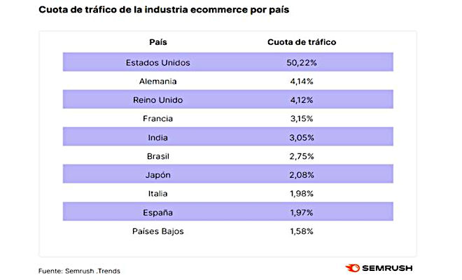 - Top 10 países con más tráfico a comercios electrónicos