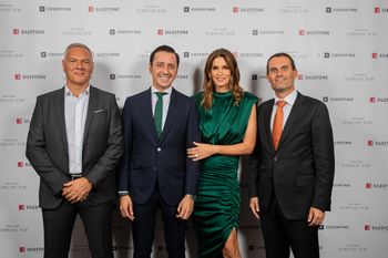 un acto que contó con Eduardo Cosentino, vicepresidente ejecutivo global de Ventas del Grupo y CEO de Cosentino North America; Santiago Alfonso, vicepresidente de Comunicación y Marketing de Grupo Cosentino; Pedro Parra, Vicepresidente Comercial en Europa; y Paul Gidley, Area Manager de Cosentino en Reino Unido. Todos ellos estuvieron acompañados por Cindy Crawford, quien durante el evento mantuvo una conversación con Tony Chamber, exredactor jefe de la revista Wallpaper y fundador de la consultoría de diseño TC & Friends, al que desveló las claves de su colaboración con la marca de encimeras.