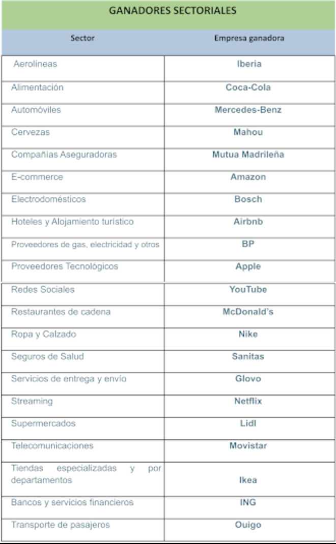 Para la elaboración de esta segunda edición se han realizado más de 24.000 encuestas, en España a lo largo de 2023, habiéndose analizado un total de 120 marcas de 20 sectores del mercado español, y han dado como resultado como empresas más innovadoras en cada uno de los 3 apartados (comercial, digital y social): APPLE (comercial y digital), TOYOTA (social), ZARA (comercial español), BALAY (social español) y CABIFY (digital español). Por lo que respecta a líderes de su sector, destacan las españolas MAHOU en cervezas, MOVISTAR en telecomunicaciones, SANITAS en seguros de salud, GLOVO en servicios de entrega y envío, MUTUA MADRILEÑA en compañías aseguradoras e IBERIA en aerolíneas.
